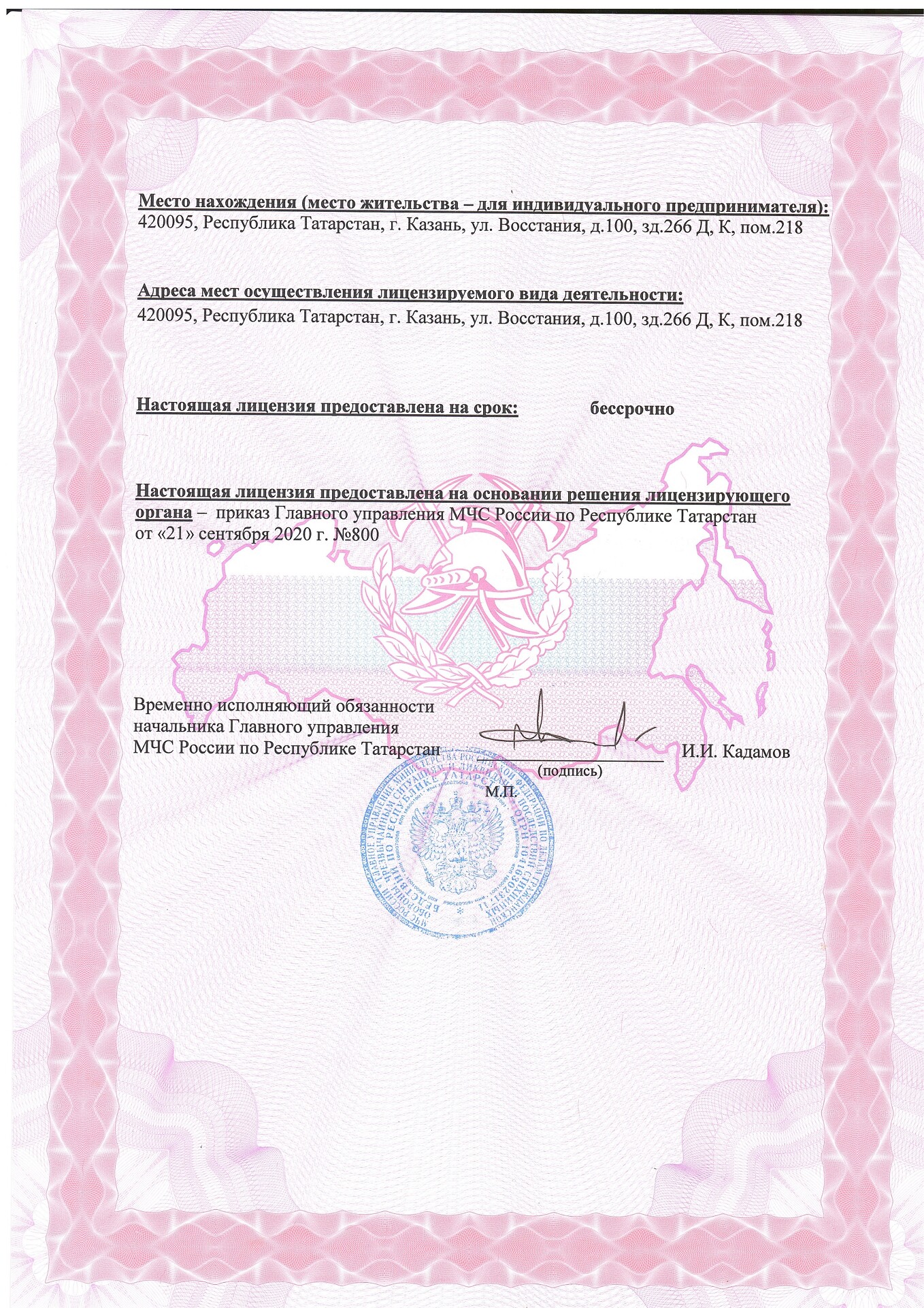 Республика Татарстан, г.Казань, ул.Восстания 100, здание №266Д, офис 218.
