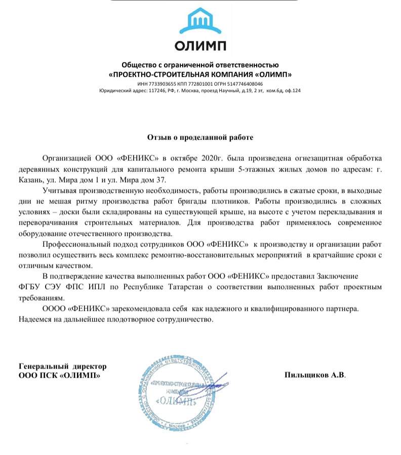 Работы по огнезащитной обработки считаются принятыми в том случае, когда предоставляется положительное заключение ИПЛ МЧС